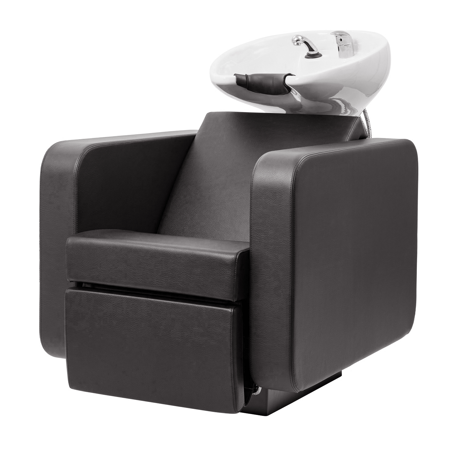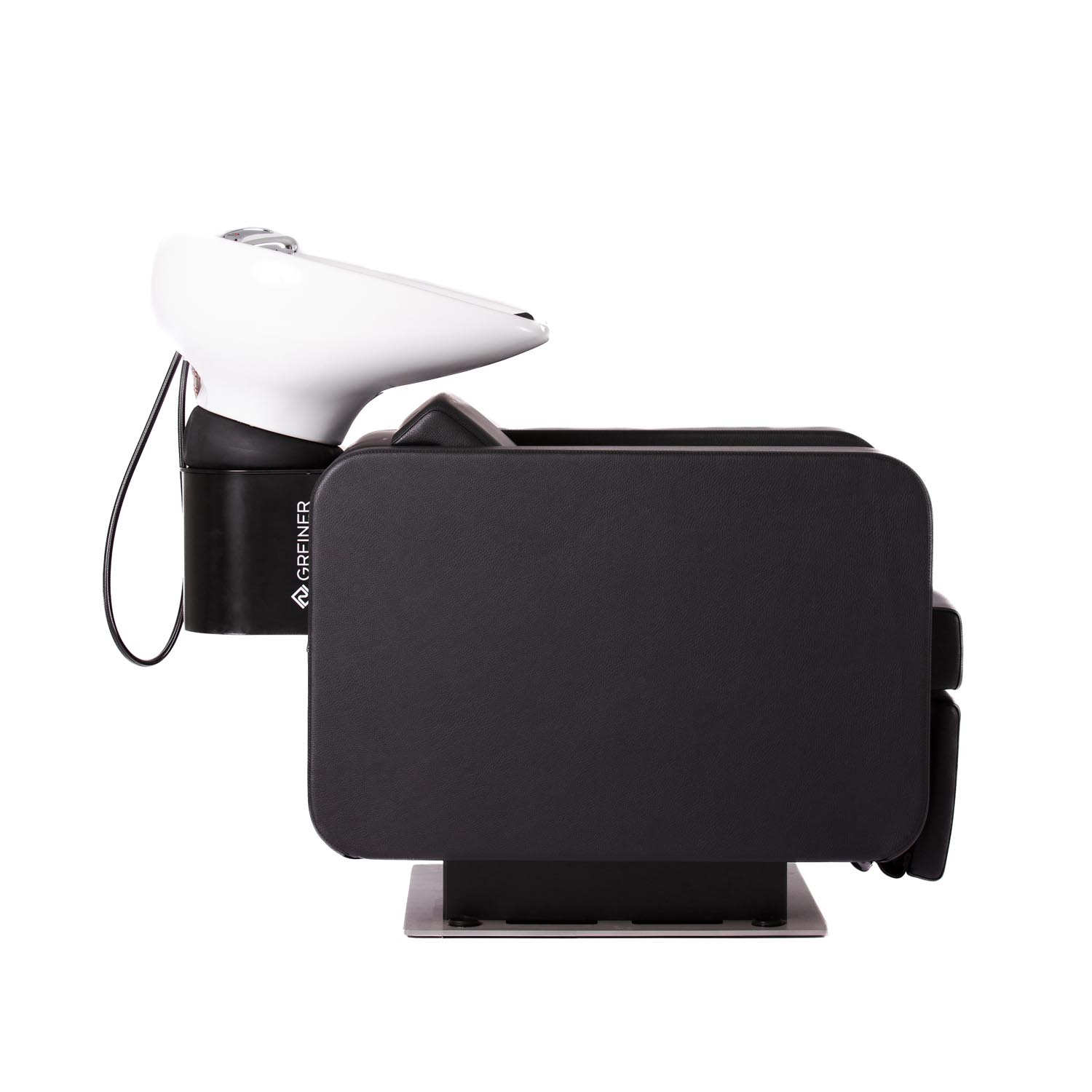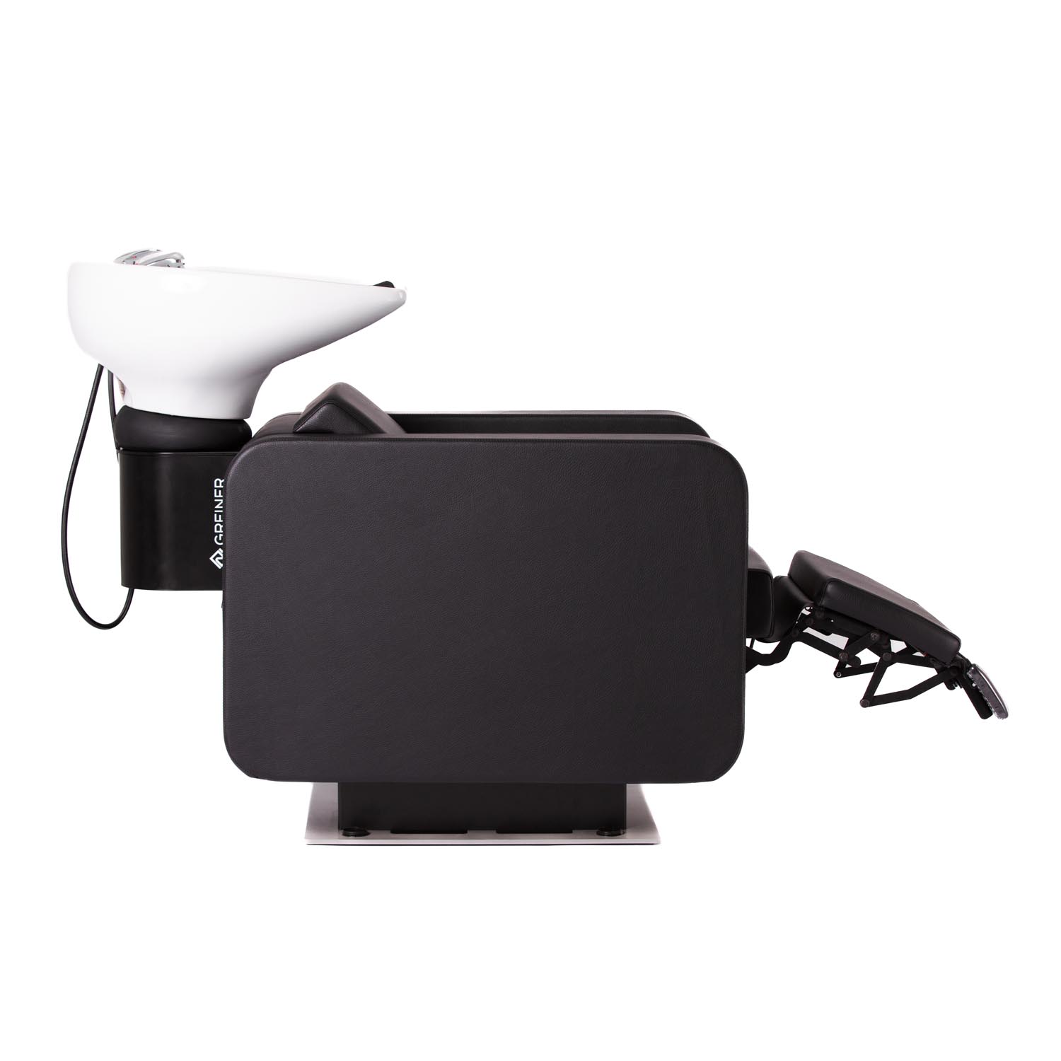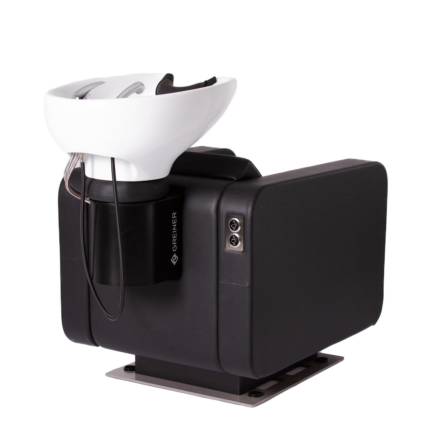 Massage device in the back and electrically swiveling leg pads are optional. The cosmolore washing chair has either a black or white basin - in standard XL size for long hair, or in XXL format for super long hair.
