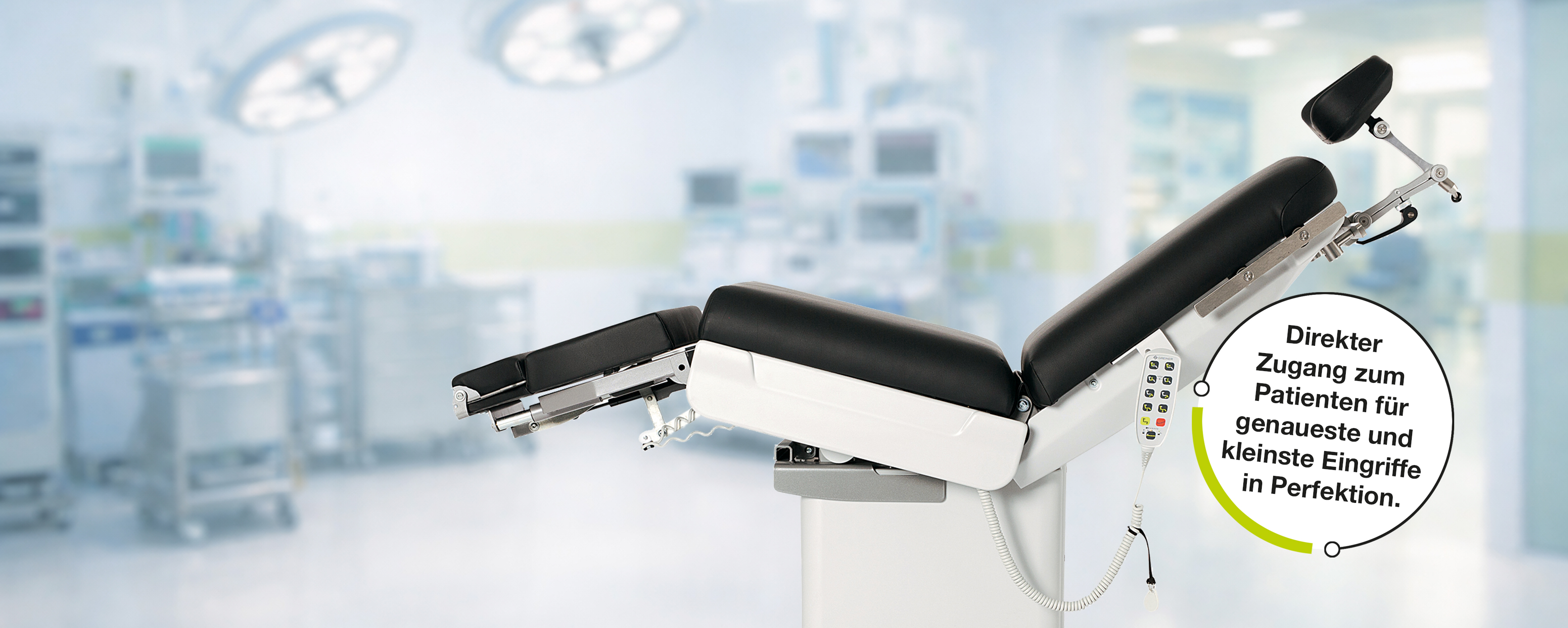 Versorgungsliegen schließt mit ihrem durchleuchtbaren Beinteil genau die...