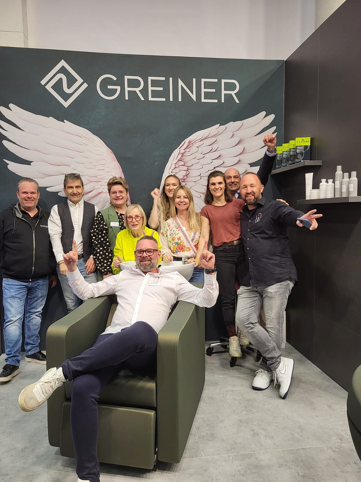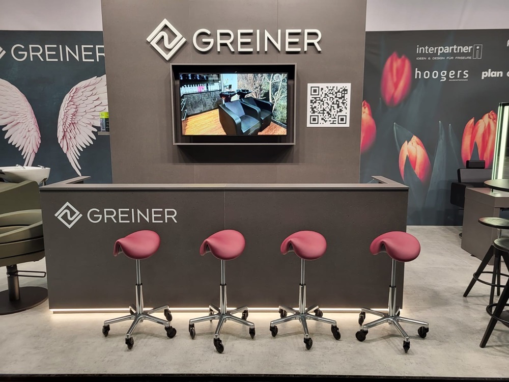 Wir von GREINER waren zusammen mit vier Vertriebspartner - Interpartner, PiccoBello Design, Plan Creative und Hoogers (aus Holland) - vor Ort vertreten. Gemeinsam hielten wir die Stellung und präsentierten unser breites Spektrum an hochwertigen Friseurstühlen, von Modell 35 bis Modell 55, in gewohnt klassischem Stil und den aktuellen Trendfarben.